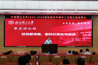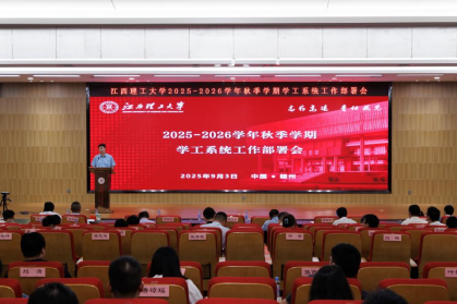9月3日,我校2025-2026学年秋季学期学工系统工作部署会在三江校区图书馆报告厅召开,校党委常委、副校长熊志华出席会议并讲话。校党委学生工作部、校团委、国际教育学院相关人员,全体专兼职辅导员参加会议。南昌校区、先进铜产业学院、电子信息产业学院视频参会。