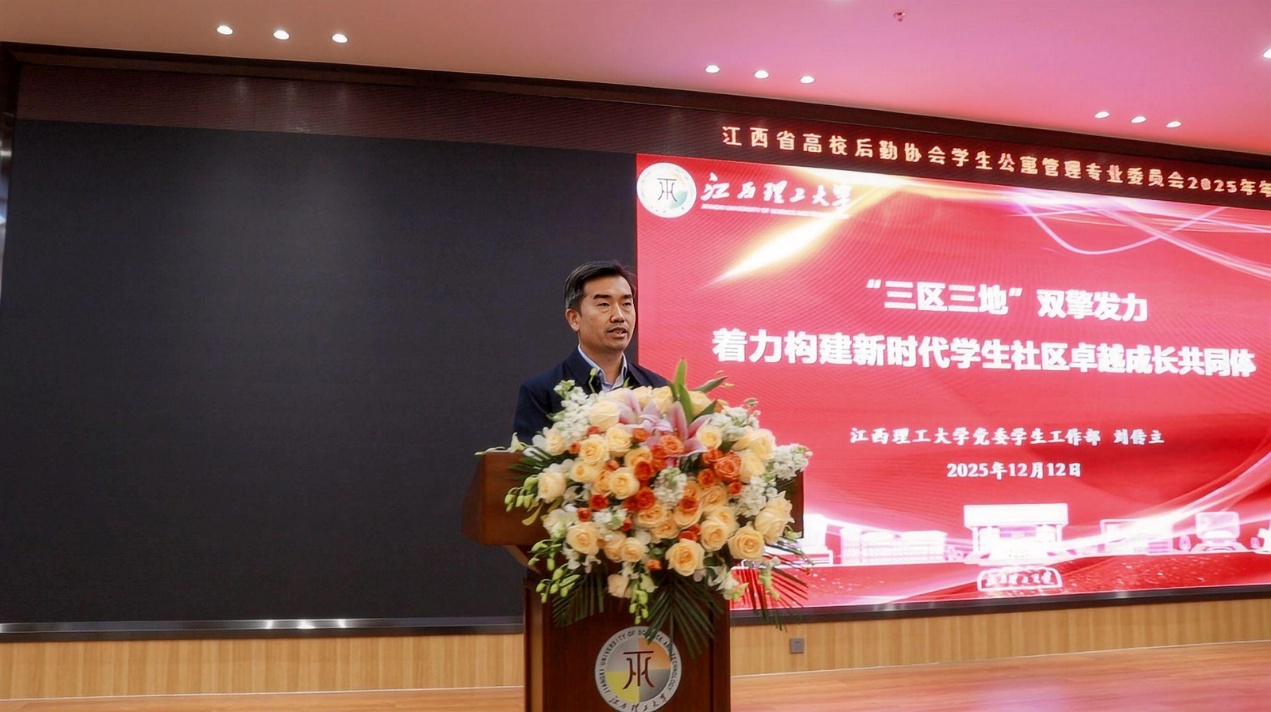 12月10日至12日,江西省高校后勤协会学生公寓管理专业委员会(省寓专会)2025年年会暨学生公寓管理规范化建设推进会在我校举行。本次会议由省寓专会主办,江西理工大学、赣南师范大学、赣南医科大学、江西环境工程职业学院共同承办。中国教育后勤协会副秘书长黎玖高,江西理工大学党委常委、副校长宁洁,江西省高校后勤协会会长侯贵生,全国寓专会副秘书长、省寓专会主任琚烈勇等出席会议。来自全省各高校学生公寓管理系统的110余名代表齐聚一堂,共同总结工作、交流经验、谋划发展,着力推动我省高校学生公寓管理服务工作提质增效。