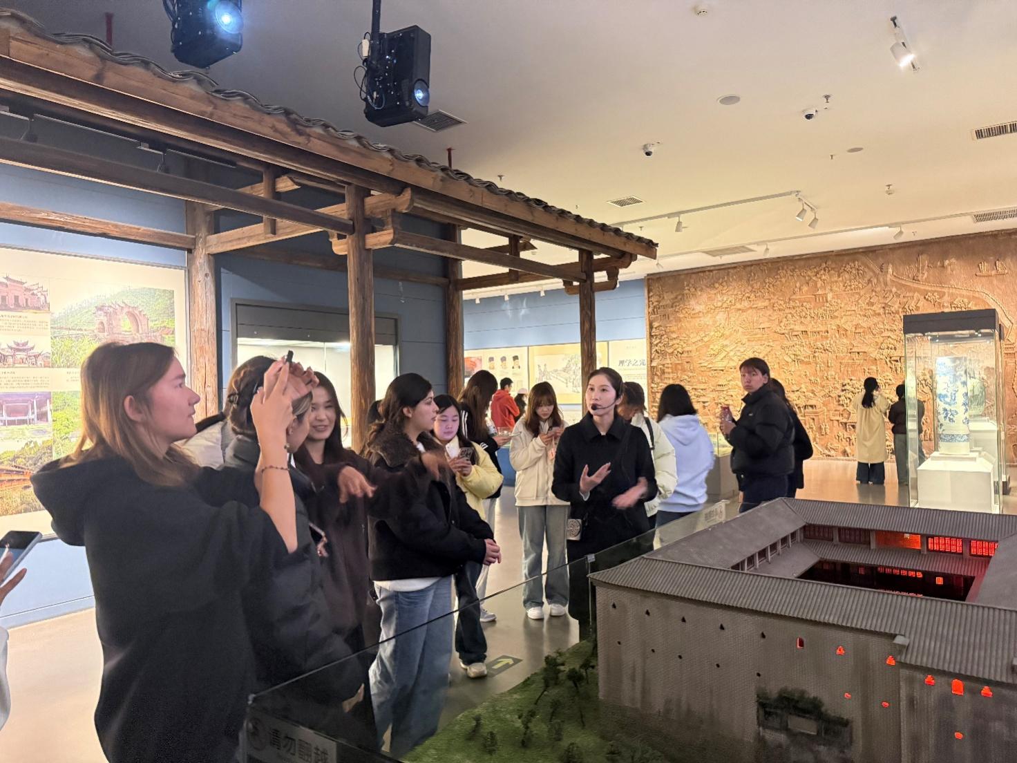 上午,同学们前往赣州市博物馆,开展“追溯千年历史,厚植家国情怀”主题的思政研学活动。研学中,师生重点参观了“客家摇篮赣州——赣州历史与文化”、“百年征程江西红”以及“奋进新时代,书写新荣光——赣南等原中央苏区振兴发展成就”三个展区。借助图片、文物与场景模拟等多元展现形式,近距离感悟赣州历史底蕴,系统了解本土红色文化、革命抗争历程及苏区振兴新成就,讲解员的细致解读让同学们深化了历史认知。