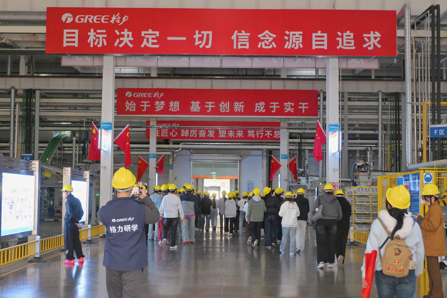 下午,同学们前往赣州格力智能制造基地,开展“融入中国制造,点燃创新梦想”主题的科技研学活动。全体师生先后走进科技展览中心、空调博物馆及数字化智慧车间,深入学习格力自主创新理念,了解空调产品体系与AI零碳健康家技术,直观感受机械臂自动化生产全过程,深化对新质生产力的认知;随后的格力课堂中,工作人员详解企业文化、基地规划及空调技术原理,进一步拓宽学生科技视野,深入感受中国智能制造的魅力。