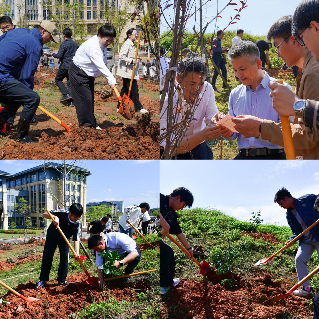手植桃李 德润杏坛——我校开展大学生公园“师德园”“故乡园”植树活动 本网讯 风和日丽,春光正好。4 月 1 日下午,我校在大学生公园 “师德园”“故乡园” 植树区举行主题植树活动。校党委书记刘祖文,中国工程院院士、校长葛世荣,党委常委、副校长董冰岩、宁洁,党委常委、党委宣传部部长汪锋锁出席活动。党委办公室、校长办公室、学工部、教师工作部、总务部、人工智能学部等单位负责人,赣州校区各学院党委(党总支)副书记、辅导员及学生代表参加。 活动伊始,董冰岩致辞。他指出,本次联合植树活动既是践行绿色发展理念、植绿护绿的生态实践,更是师德铸魂、乡土铸情、立德树人的生动思政课堂。在师德园栽种百株桃李,寄托 “桃李满园” 美好愿景,彰显学校加强师德师风建设的坚定决心。希望全体教师牢记为党育人、为国育才使命,以精湛学识赋能学生成长,以高尚师德涵养学生品格,躬身践行 “躬耕教坛、强国有我” 的责任担当。在故乡园栽植脐橙,旨在引导广大师生铭记故土、情系家国,从红土地厚重历史与赣南人民精神中汲取力量,读懂“故乡”二字背后的家国情怀与责任担当,深刻领会学校扎根地方、服务国家的初心使命,把个人理想融入党和国家事业发展大局,以实干担当争创一流业绩。 植树现场,校领导率先垂范,与师生们分工协作、默契配合,挥锹挖坑、扶苗正干、培土围堰、提水浇灌,一派热火朝天的劳动景象,汗水浸湿衣衫,大家脸上却洋溢着劳动的喜悦。春日暖阳下,新栽苗木迎风挺立,为校园增添盎然生机与绿色希望。 “师德园遍植桃李,承载着学校对教师的师德期许;故乡园专种赣南脐橙,既彰显地方特色,更能让学子铭记故土、眷恋母校、厚植爱乡爱校情怀。”刘祖文在植树时表示,师生共植不仅是美化校园的生态行动,更是凝聚育人合力、强化责任担当的实践课堂,希望全体师生珍惜校园环境,不断增强爱校荣校的自豪感与使命感。 矿业工程学院辅导员张小普表示,此次活动为校园添新绿,也拉近了师生距离,厚植了师生情谊。规划设计学院产品设计 231 班学生戴雅琴说,劳动的乐趣令人难忘,期待未来重返母校时,能品尝到自己亲手栽下的果实。 本次活动中,至善园和量子园辅导员和学生代表共57人种植桃树,红旗园辅导员和学生代表共57人种植李树,风华园和正茂园辅导员和学生代表共74人种植脐橙树。活动将生态文明教育、师德师风建设、乡土情怀培育与劳动实践深度融合,在美化校园的同时,也在师生心中播下绿色理念、师德初心与家国情怀的种子。 下一步,学校将持续做好苗木管护与文化赋能,让“师德园”“故乡园”成为校园生态地标与特色育人阵地,引导全体师生以树为媒、以绿为介,践行使命、砥砺前行,共筑绿色校园,共育时代新人。 (文/万梦婷、王佳棋 图/谢雯颖、罗小雨)